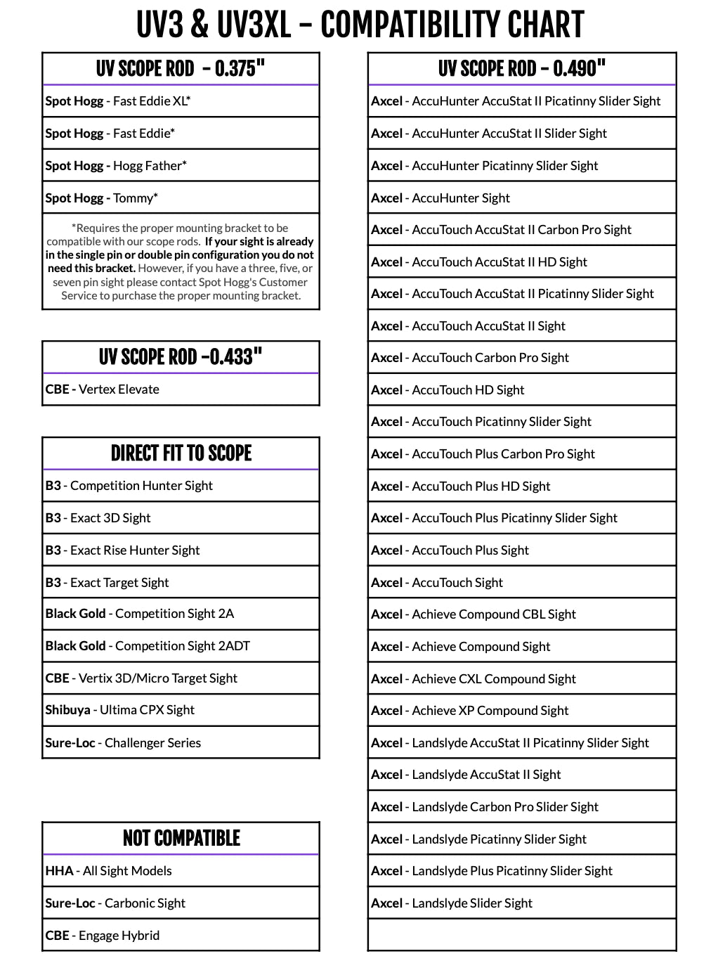 - This scope rod comes with an integrated tool that allows you to adjust the set screws on the side of the UV3 or UV3XL scope.